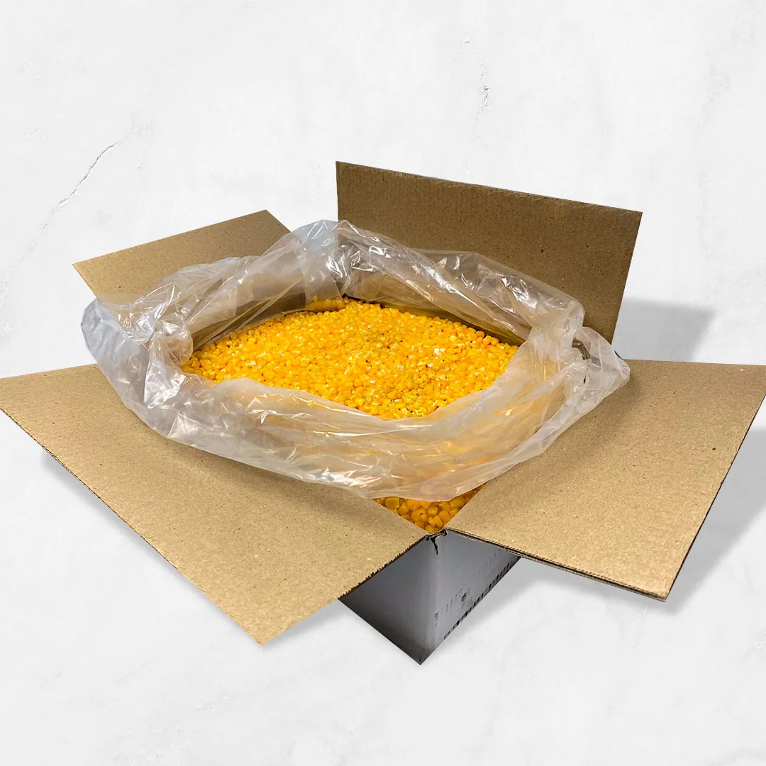 Maíz Súper Dulce: granos tiernos y naturalmente dulces, perfectos para ensaladas, guarniciones o recetas especiales. Disponible en prácticas cajas de 10 kilos, que puedes elegir al granel, o en 10 bolsas de 1 kilo cada una.