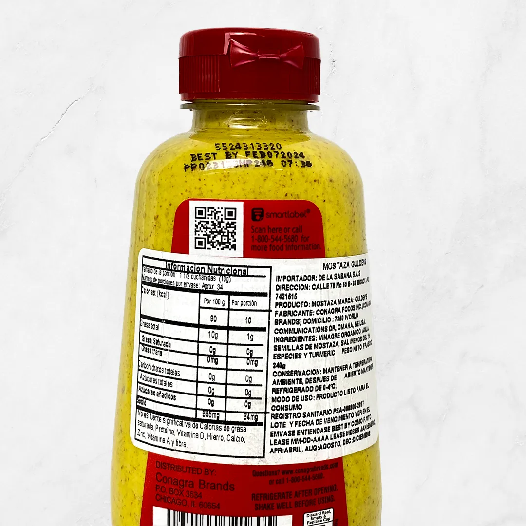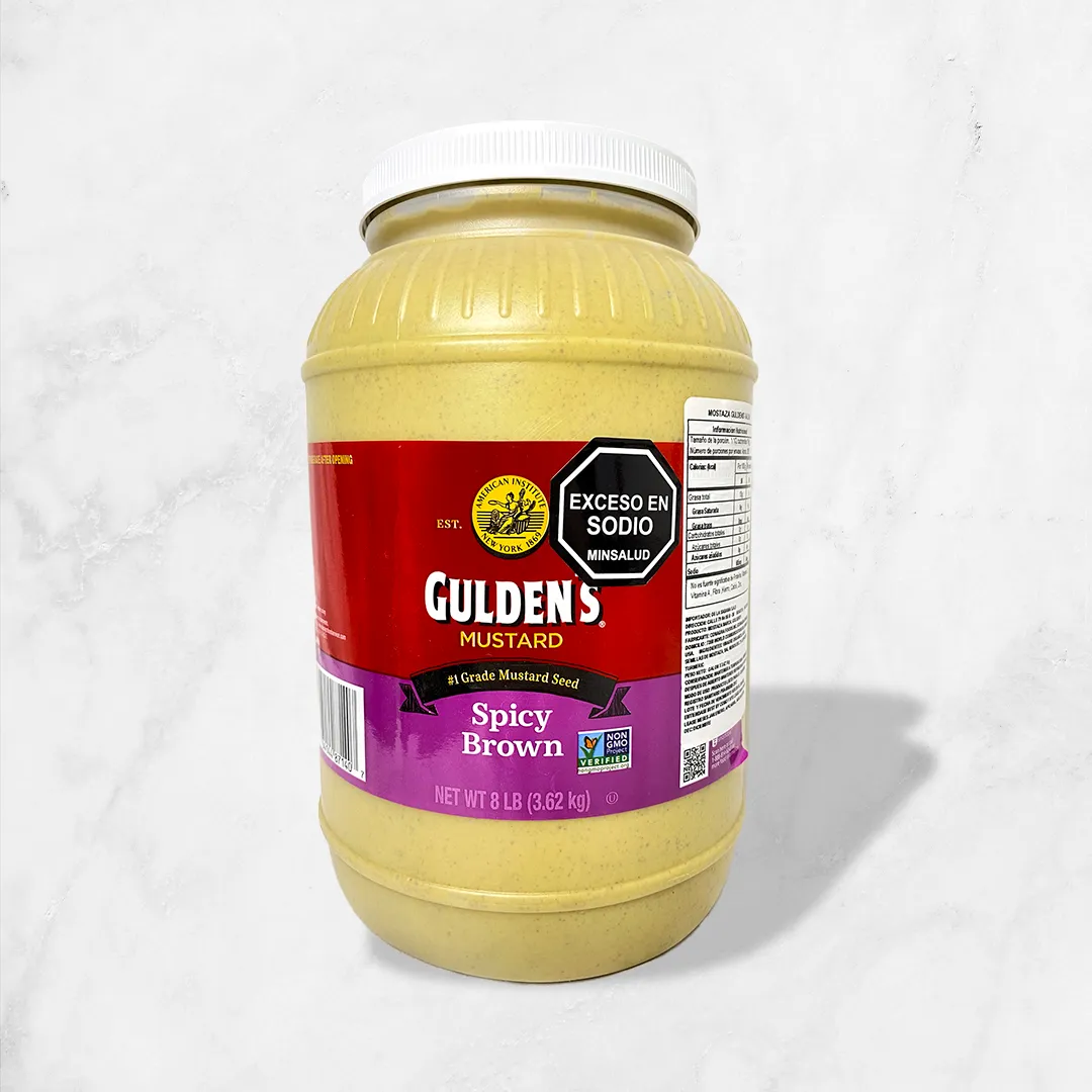 Mostaza Gulden’s: una mostaza estilo americano reconocida por su sabor único, suave pero con un toque dulce y especiado. Perfecta para acompañar hot dogs, sándwiches y ensaladas, o como base para salsas y aderezos. Su textura cremosa y su perfil de sabor equilibrado la hacen ideal para quienes buscan un toque clásico y versátil en sus comidas.