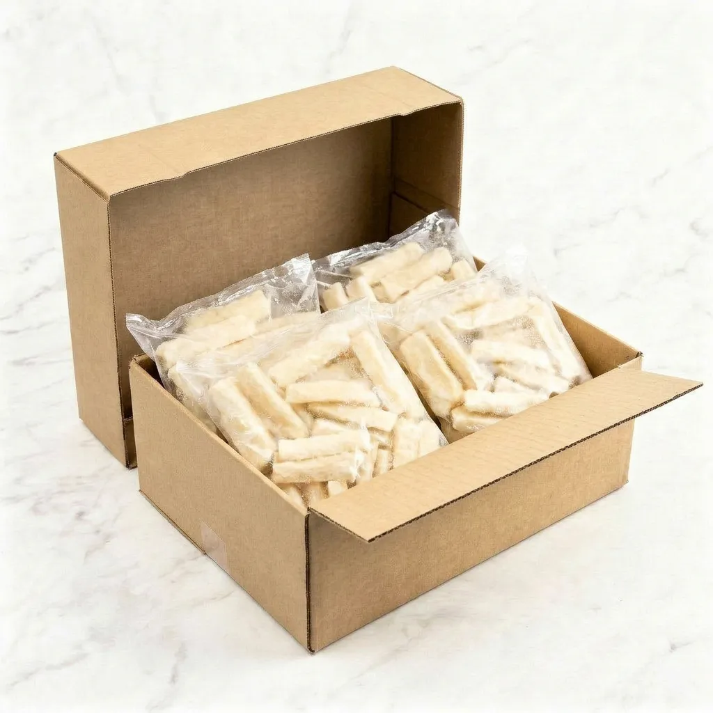 Yuca congelada: Caja por 10 kilos porcionada en bolsas de 1 kilo.